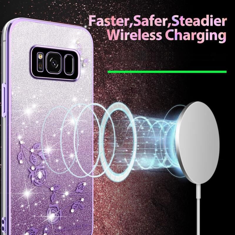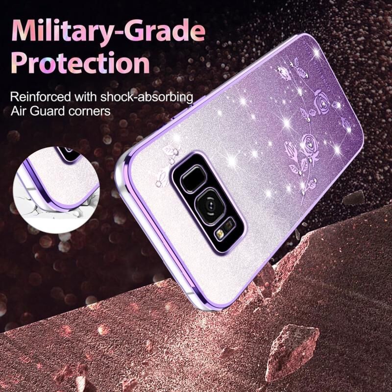 For Samsung Galaxy S8 Gradient Glitter Flower All-inclusive Phone Case(Purple)