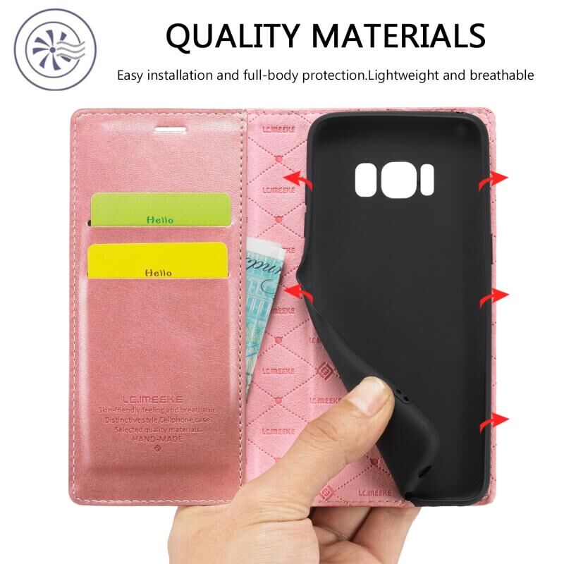 Για Samsung Galaxy S8+ LC.IMEEKE Ισχυρός Μαγνητισμός Εξαιρετικά Λεπτή Οριζόντια Αντικραδασμική Ματ Θήκη TPU + Δερμάτινη PU με Θήκη & Θήκες Καρτών & Πορτοφόλι (Μαύρο) (LC.IMEEKE)