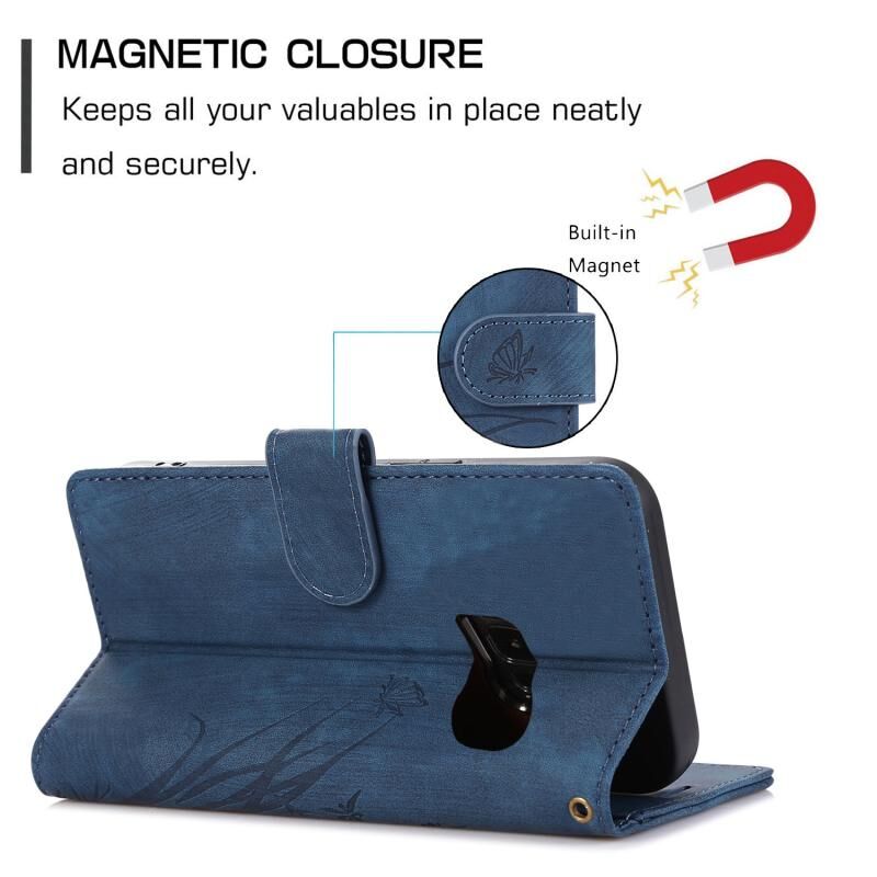 Θήκη τηλεφώνου δερμάτινη ανάγλυφη με σχέδιο ορχιδέας πεταλούδας για Samsung Galaxy S8+ (Μπλε)