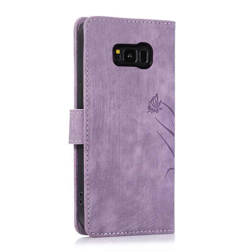 For Samsung Galaxy S8+ Orchid Butterfly Embossed Leather Phone Case(Purple)