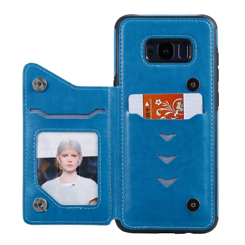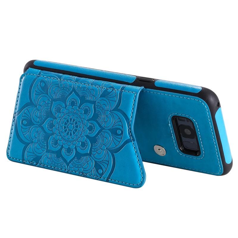 Για Samsung Galaxy S8 Plus λουλούδι ανάγλυφο μοτίβο Shockproof προστατευτική θήκη με θήκη & υποδοχές για κάρτες & πλαίσιο φωτογραφιών (μπλε)