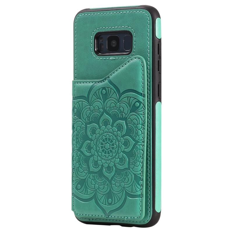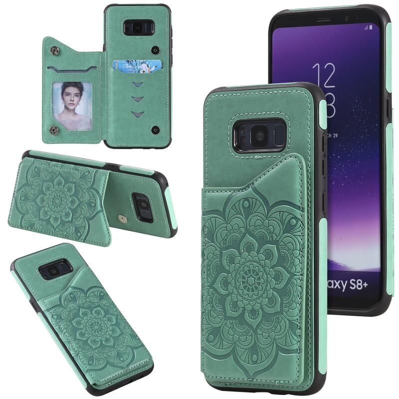Για Samsung Galaxy S8 Plus λουλούδι ανάγλυφο μοτίβο Shockproof προστατευτική θήκη με θήκη & υποδοχές για κάρτες & πλαίσιο φωτογραφιών (πράσινο)