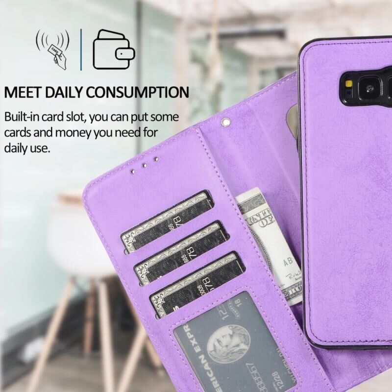 Για το Samsung Galaxy S8+ Ρετρό 2 σε 1 Αποσπώμενη μαγνητική οριζόντια θήκη TPU + PU δέρμα με θήκη για κάρτες & υποδοχές για κάρτες & πλαίσιο φωτογραφιών & πορτοφόλι (μωβ)