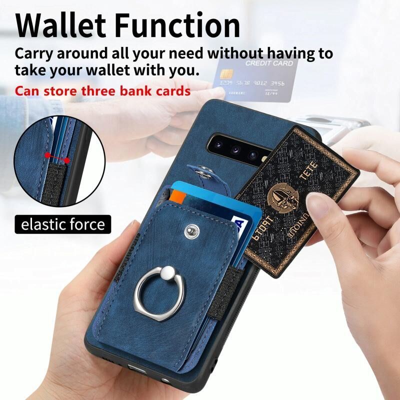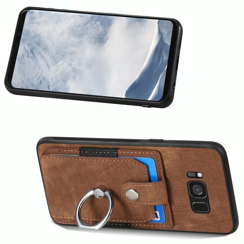 Για το Samsung Galaxy S8 + Ρετρό δέρμα αίσθηση δαχτυλίδι κάρτα πορτοφόλι υπόθεση τηλεφώνου (καφέ)