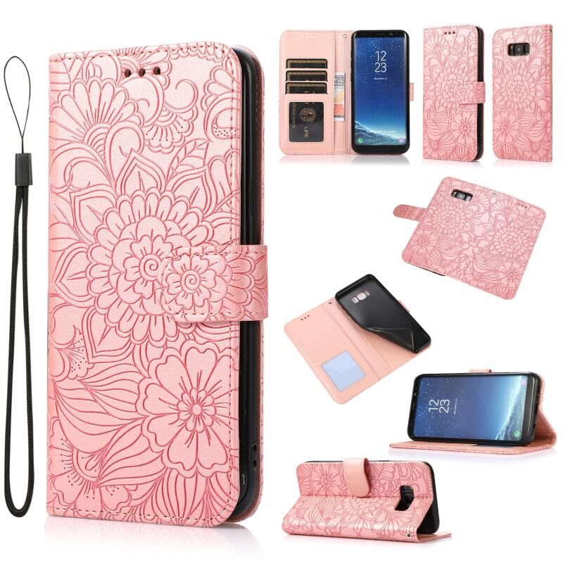 Για Samsung Galaxy S8 + δέρμα αίσθηση ανάγλυφο ηλιοτρόπιο οριζόντια Flip δερμάτινη θήκη με υποδοχή & υποδοχές για κάρτες & πορτοφόλι & Lanyard (Ροζ χρυσός)
