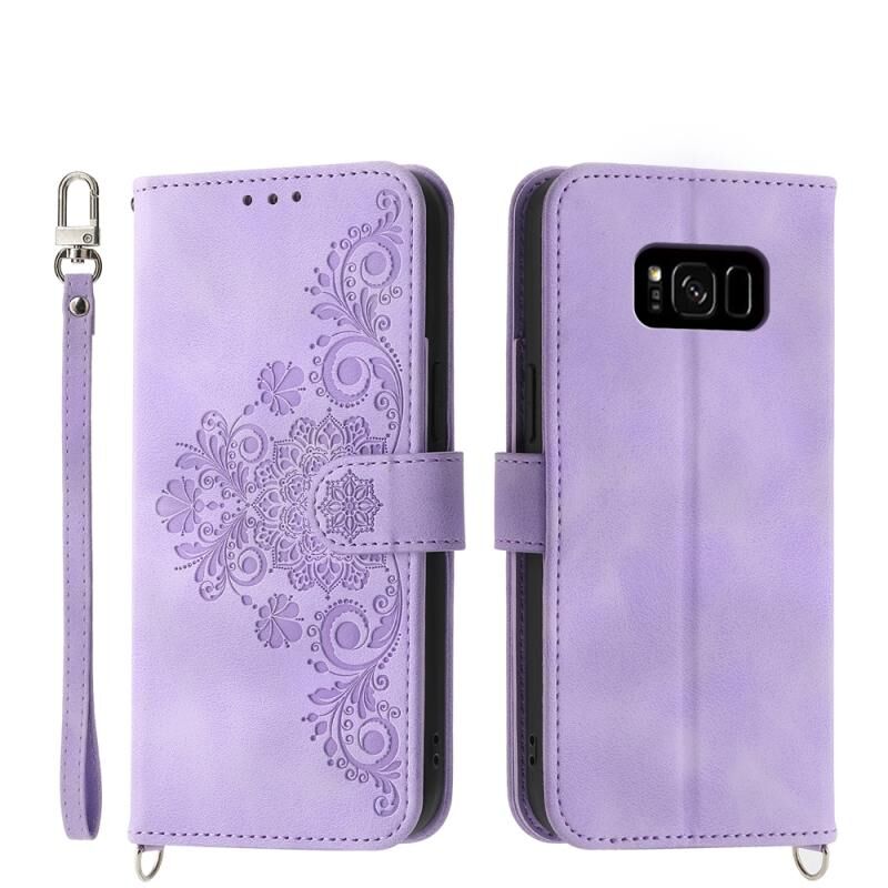 Για το Samsung Galaxy S8 + δέρμα αίσθηση Λουλούδια ανάγλυφο πορτοφόλι δερμάτινη θήκη τηλεφώνου (μωβ)