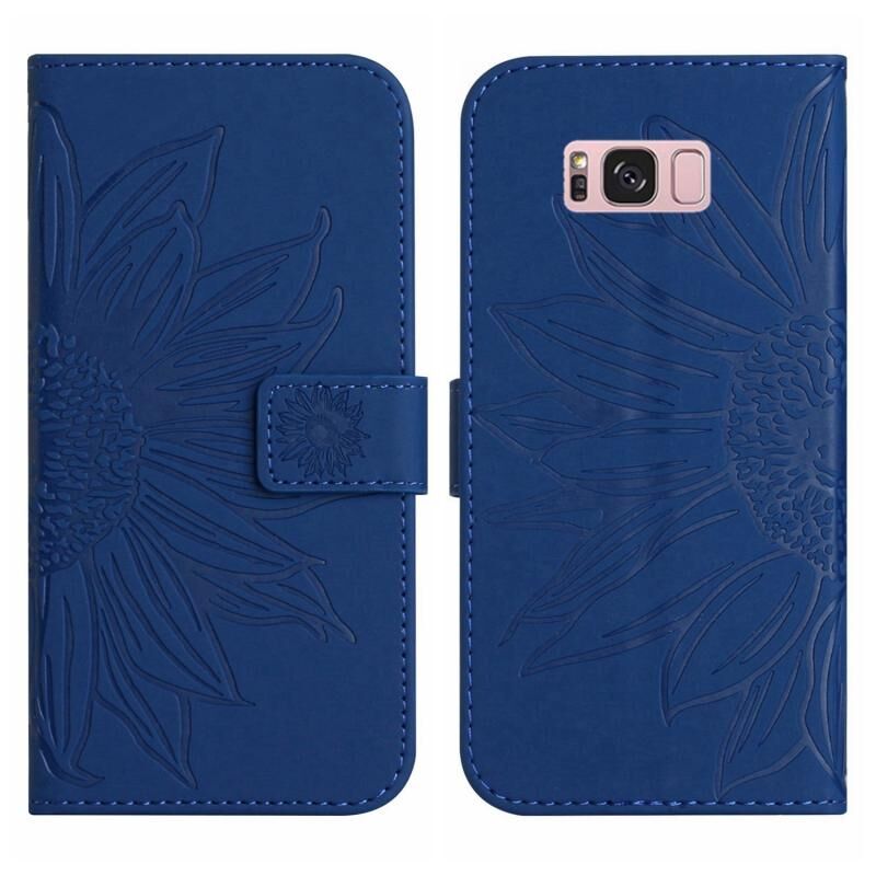 Για το Samsung Galaxy S8 + δέρμα αίσθηση Sun Flower μοτίβο Flip δέρμα τηλέφωνο υπόθεση με κορδόνι (σκούρο μπλε)