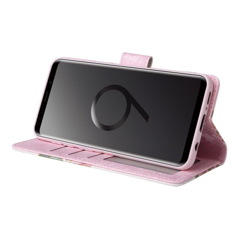 Θήκη δερμάτινη με σχέδιο bronzing (ροζ λουλούδι) για Samsung Galaxy S9 με προστασία RFID.