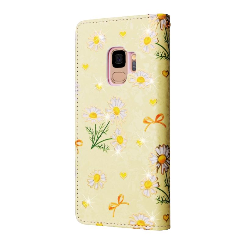 Θήκη Samsung Galaxy S9 από δέρμα με σχέδιο μπρονζέ βαφής και προστασία RFID (Κίτρινο Μαργαρίτα)