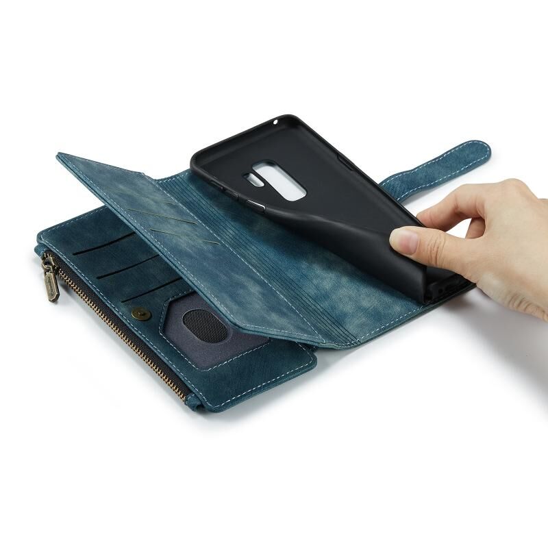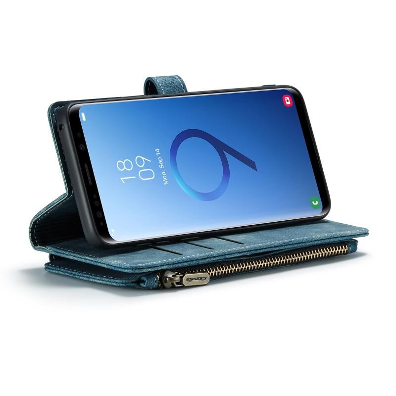 Θήκη για Samsung Galaxy S9+ CaseMe-C30 PU + TPU Πολυλειτουργική Οριζόντια Δερμάτινη Θήκη με Στήριξη & Θήκη Καρτών & Πορτοφόλι & Τσέπη με Φερμουάρ (Μαύρο) (Μπλε)