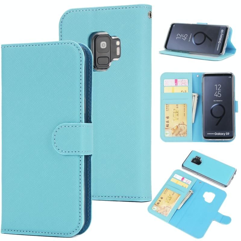 Για Samsung Galaxy S9 Σταυρός Υφή Αποσπώμενη δερμάτινη θήκη τηλεφώνου (μπλε)