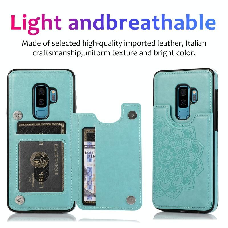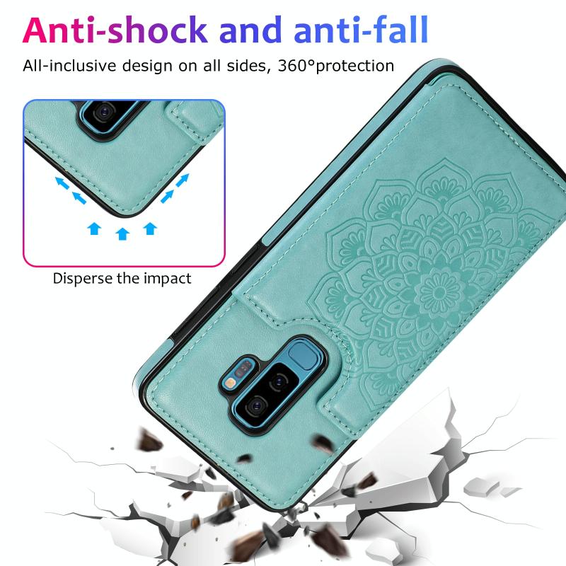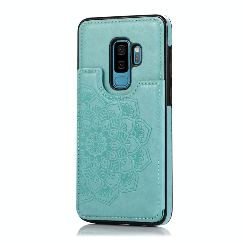 For Samsung Galaxy S9 Double Buckle Mandala Pattern PU+TPU Protective Case with Card Slots & Holder & Photo Frame(Green)