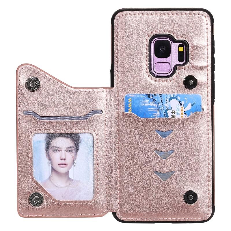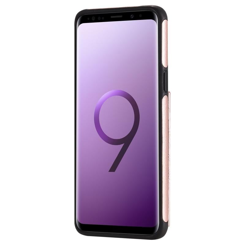 Για Samsung Galaxy S9 λουλούδι ανάγλυφο μοτίβο Shockproof προστατευτική θήκη με θήκη & υποδοχές για κάρτες & πλαίσιο φωτογραφιών (Rose Gold)