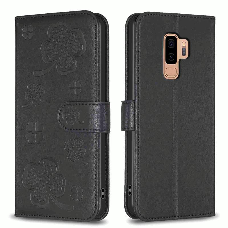 For Samsung Galaxy S9+ Four-leaf Embossed Leather Phone Case(Black)