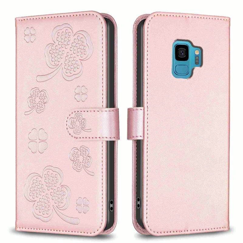 For Samsung Galaxy S9 Four-leaf Embossed Leather Phone Case(Pink)