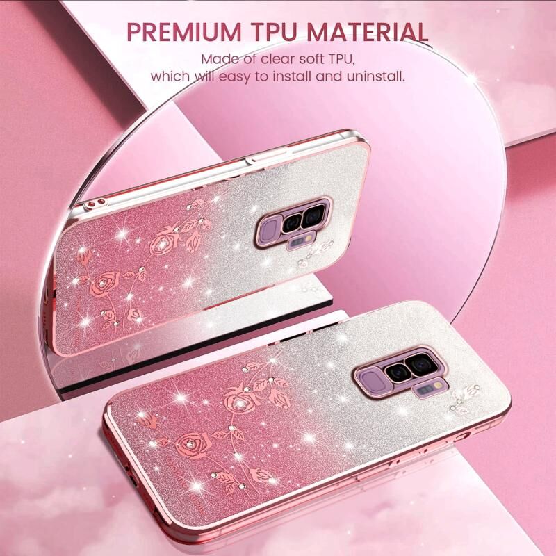 For Samsung Galaxy S9+ Gradient Glitter Flower All-inclusive Phone Case(Pink)