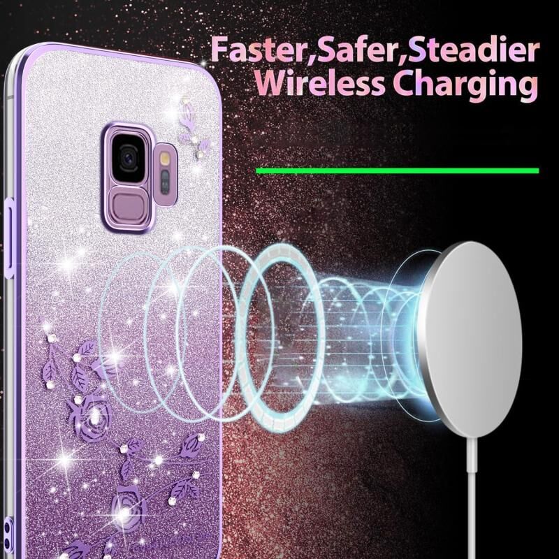 Θήκη τηλεφώνου για Samsung Galaxy S9 με διαβαθμισμένη λάμψη, λουλούδια και πλήρη κάλυψη (Μωβ)