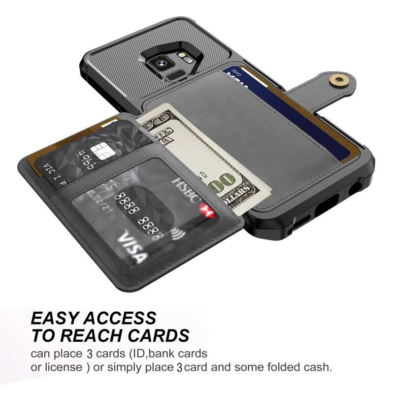 Για Samsung Galaxy S9 Μαγνητικό πορτοφόλι κάρτα τσάντα δερμάτινη θήκη τηλεφώνου (Μαύρο)