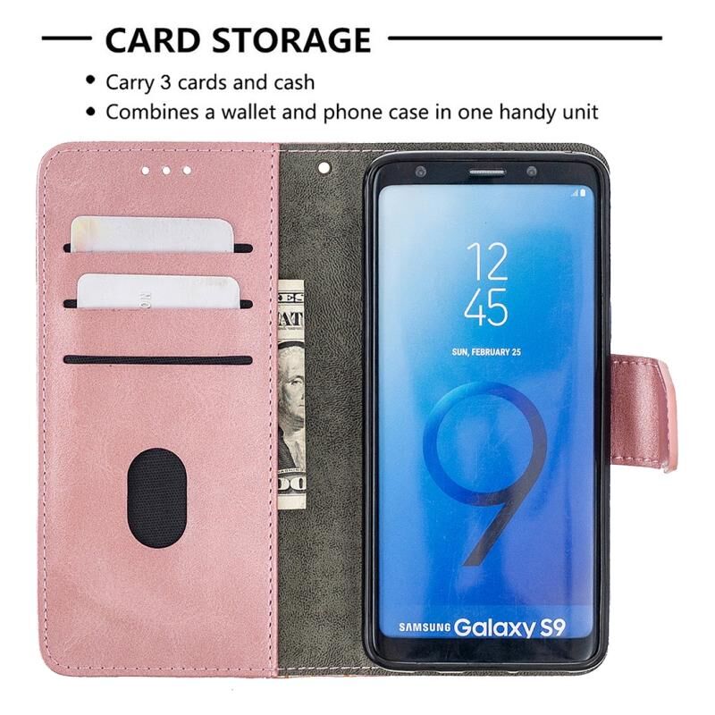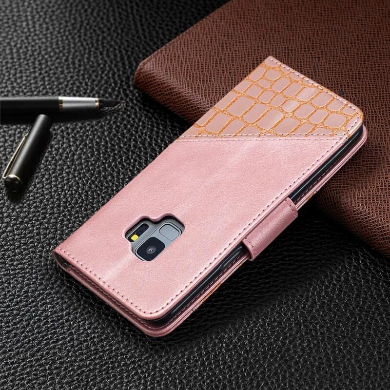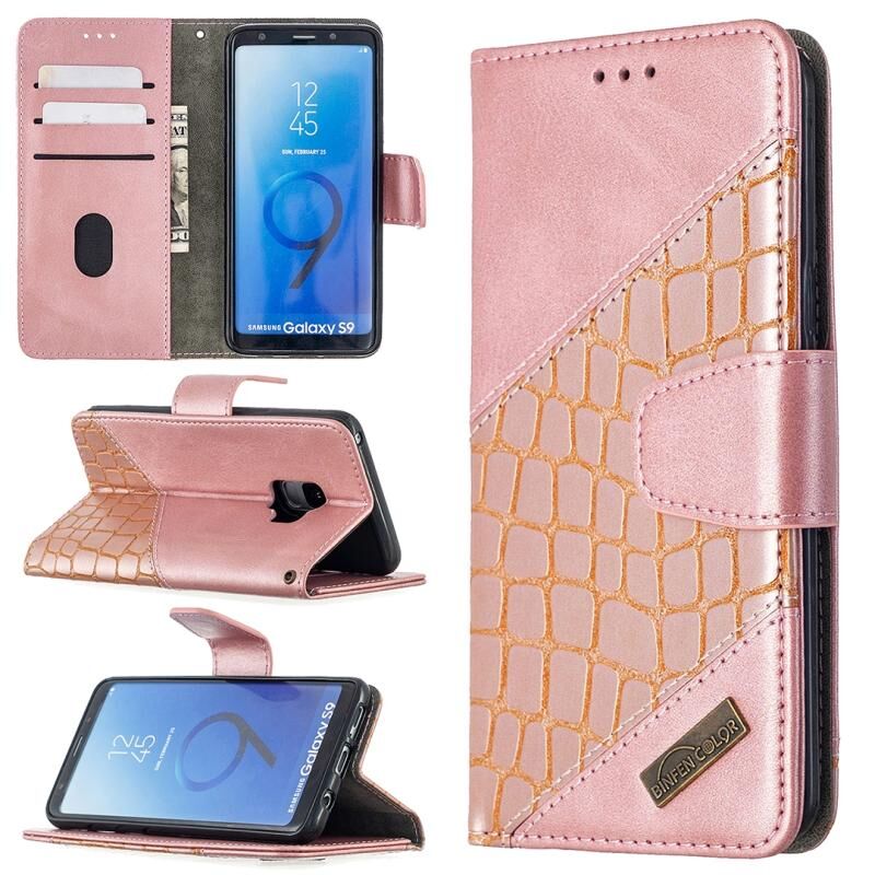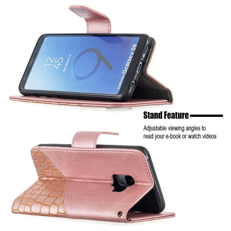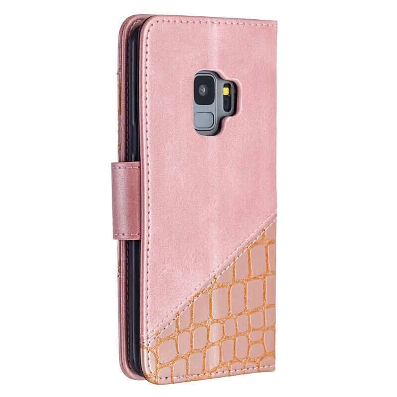 Θήκη Samsung Galaxy S9 Οριζόντια Δερμάτινη PU με Υφή Κροκόδειλου, σε Αντίστοιχο Χρώμα, με Πορτοφόλι, Θήκη & Θήκες Καρτών (Ροζ χρυσός)