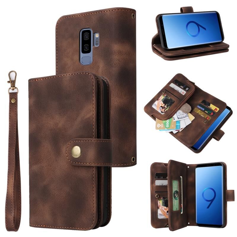 Για Samsung Galaxy S9 + Πολυλειτουργική κάρτα Slot φερμουάρ πορτοφόλι δερμάτινη θήκη τηλεφώνου (καφέ)