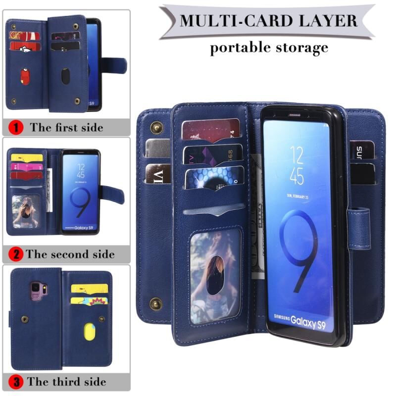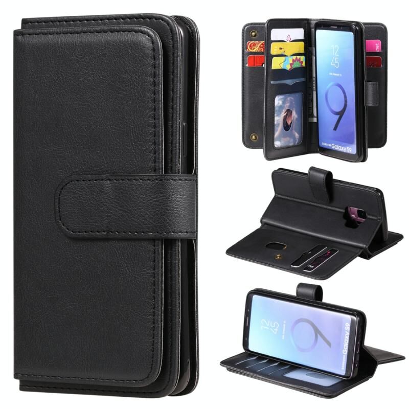 Θήκη Samsung Galaxy S9 Πολυλειτουργική Μαγνητική Θήκη από Δέρμα με Αγκράφα Χαλκού, Οριζόντια, Μονόχρωμη, με 10 Θήκες για Κάρτες & Πορτοφόλι & Στήριξη & Φωτογραφική Κορνίζα (Μαύρο)