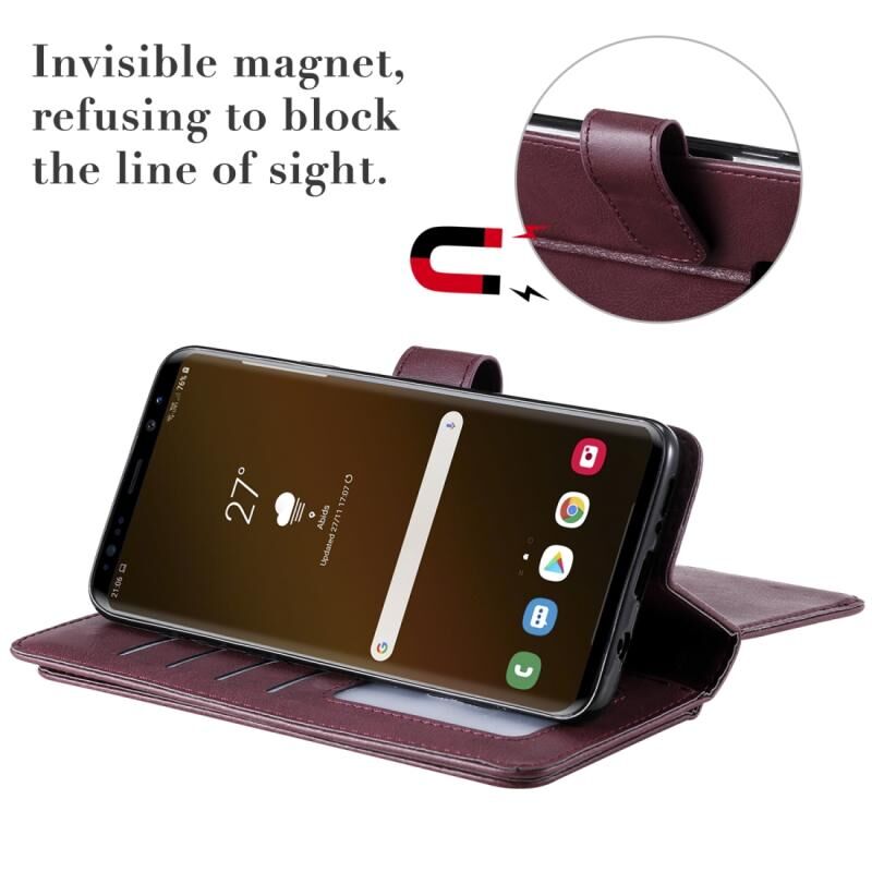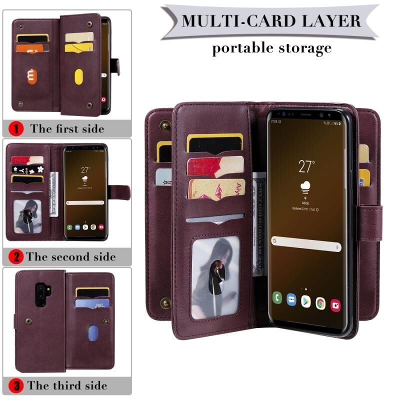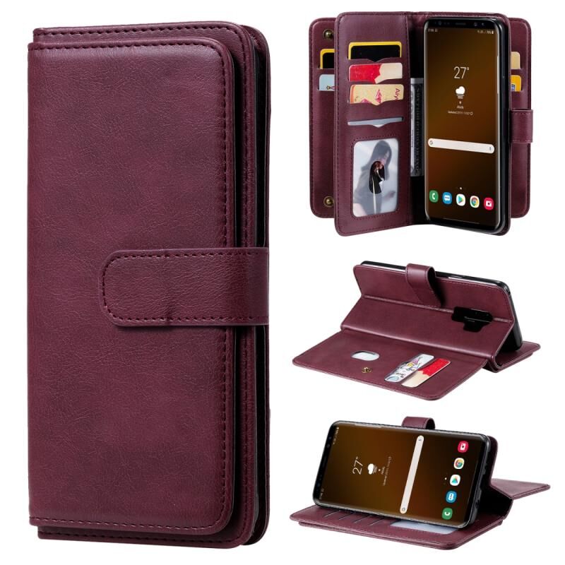 Για Samsung Galaxy S9+ Πολυλειτουργική μαγνητική χάλκινη πόρπη οριζόντια αναδιπλούμενη μονόχρωμη δερμάτινη θήκη με 10 υποδοχές για κάρτες & πορτοφόλι & θήκη & κορνίζα φωτογραφιών (κόκκινο κρασί)