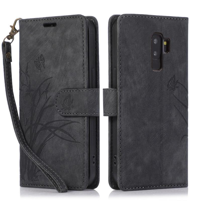 For Samsung Galaxy S9 Orchid Butterfly Embossed Leather Phone Case(Black)