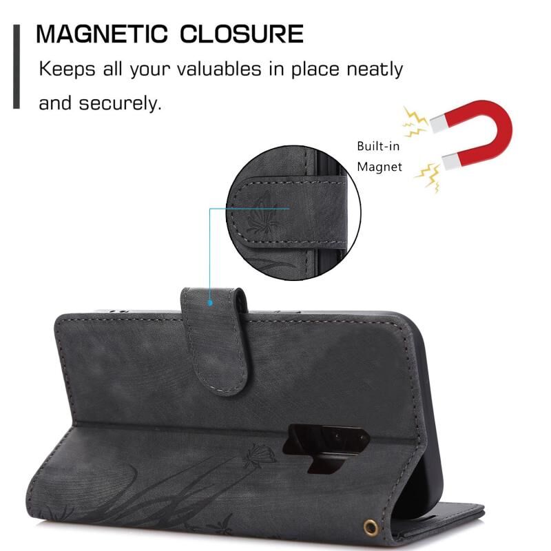 Θήκη τηλεφώνου Samsung Galaxy S9 Orchid Butterfly Embossed Leather (Μαύρο)