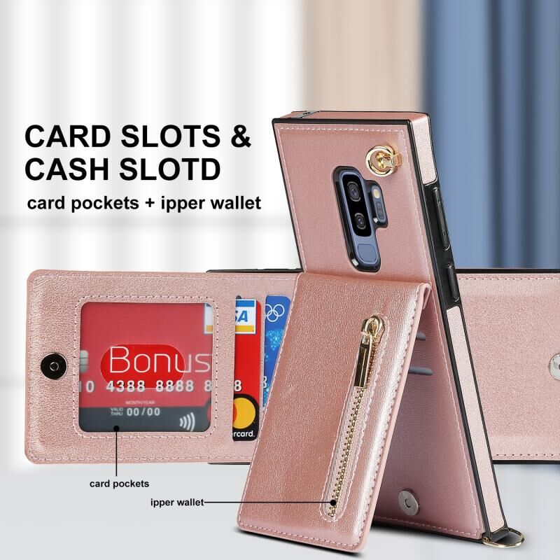 Για Samsung Galaxy S9 Plus Cross-body φερμουάρ τετράγωνο TPU + PU πίσω κάλυμμα υπόθεση με θήκη & υποδοχές για κάρτες & πορτοφόλι & λουράκι (Ροζ χρυσός)