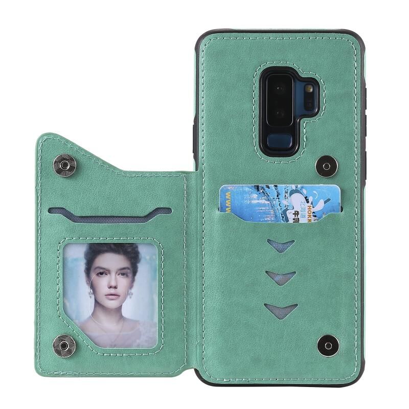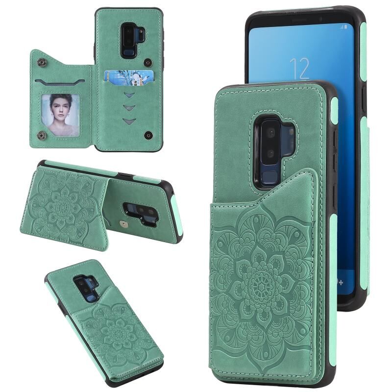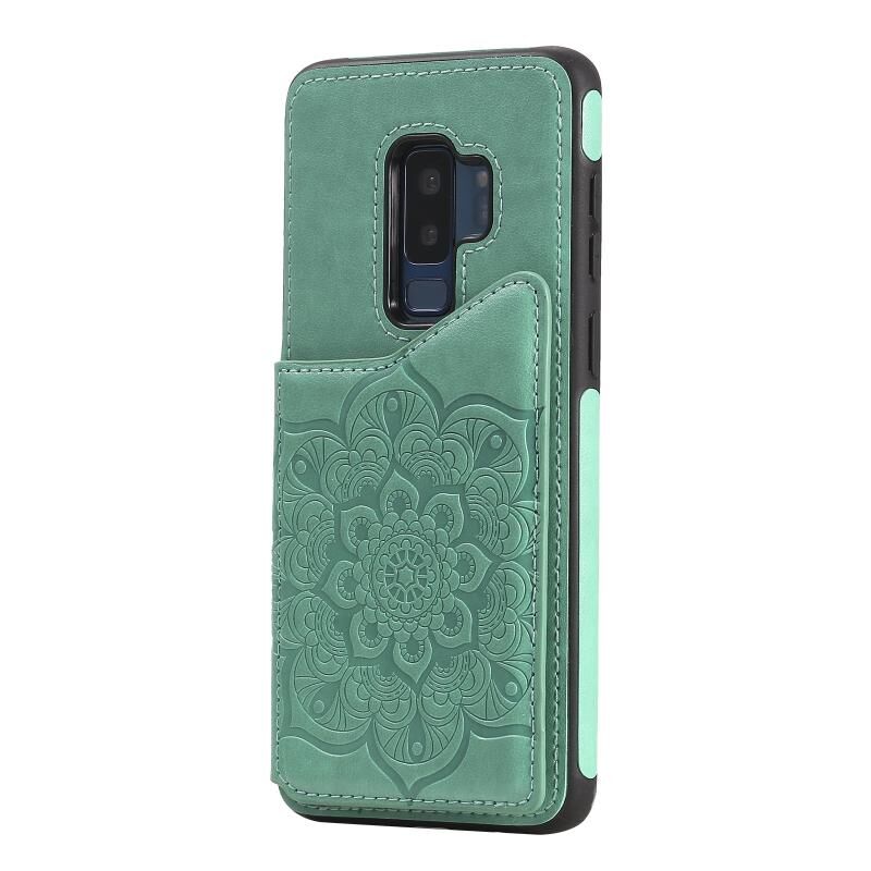 Για Samsung Galaxy S9 Plus λουλούδι ανάγλυφο μοτίβο Shockproof προστατευτική θήκη με θήκη & υποδοχές για κάρτες & πλαίσιο φωτογραφιών (πράσινο)