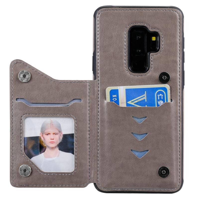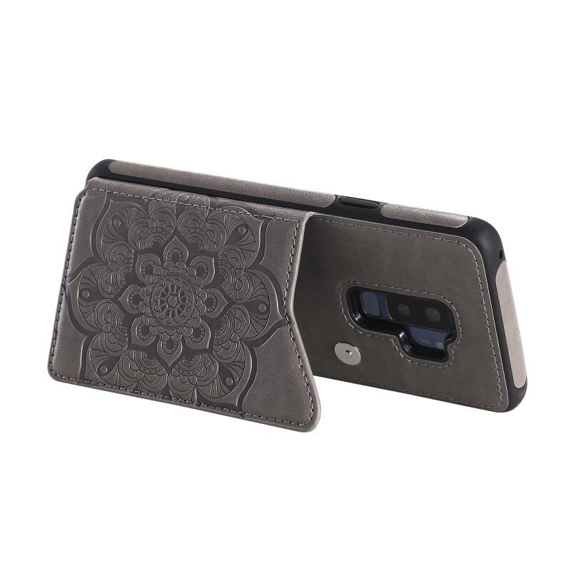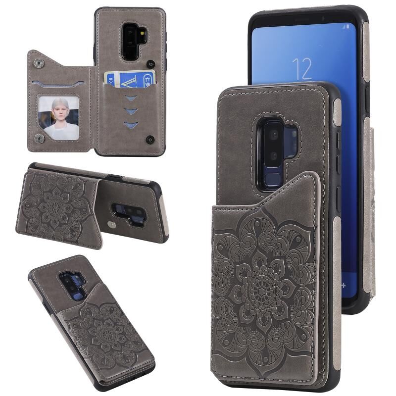 Για Samsung Galaxy S9 Plus λουλούδι ανάγλυφο μοτίβο Shockproof προστατευτική θήκη με θήκη & υποδοχές για κάρτες & πλαίσιο φωτογραφιών (γκρι)