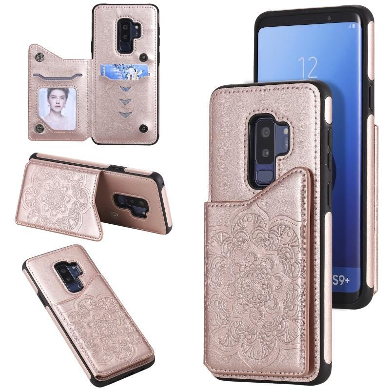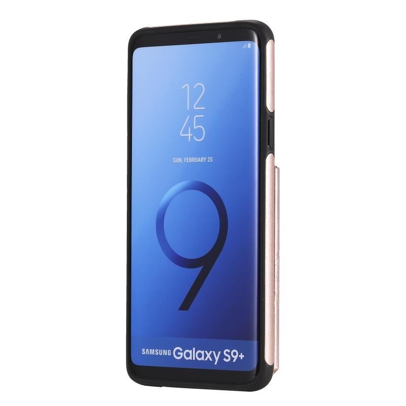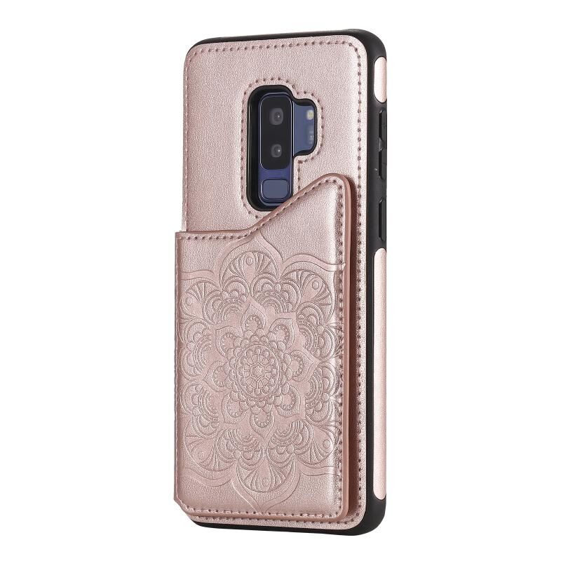 Για Samsung Galaxy S9 Plus λουλούδι ανάγλυφο μοτίβο Shockproof προστατευτική θήκη με θήκη & υποδοχές για κάρτες & πλαίσιο φωτογραφιών (Rose Gold)