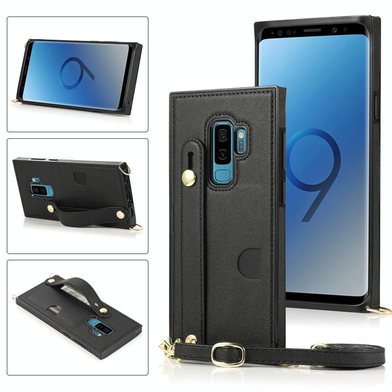 Για Samsung Galaxy S9 Plus Λουράκι καρπού PU + PU Αδιάβροχη προστατευτική θήκη με κορδόνι & θήκη & υποδοχή κάρτας (Μαύρο)