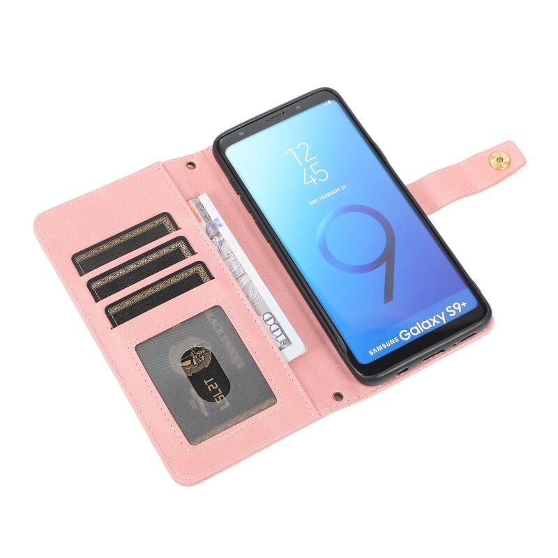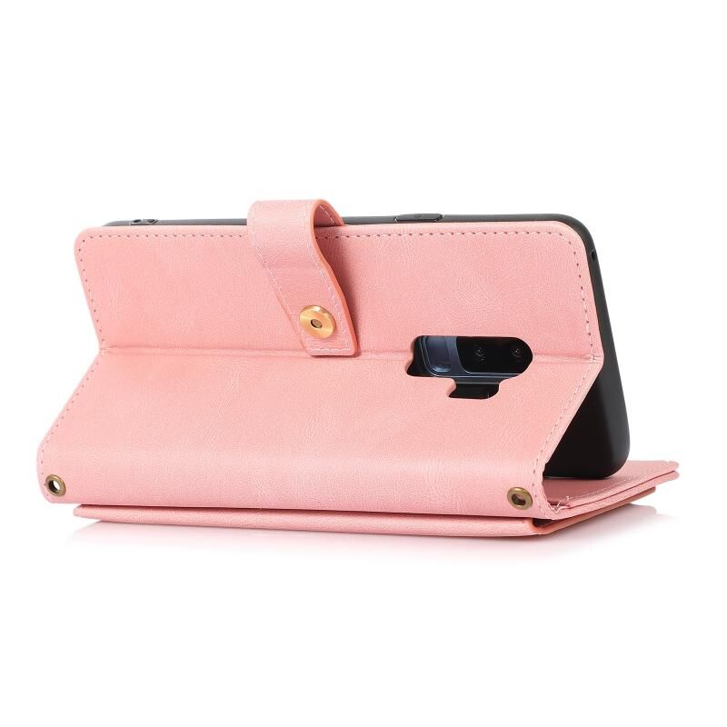 Για Samsung Galaxy S9+ PU + TPU Οριζόντια Flip δερμάτινη θήκη με θήκη & υποδοχή κάρτας & πορτοφόλι & κορδόνι (ροζ)