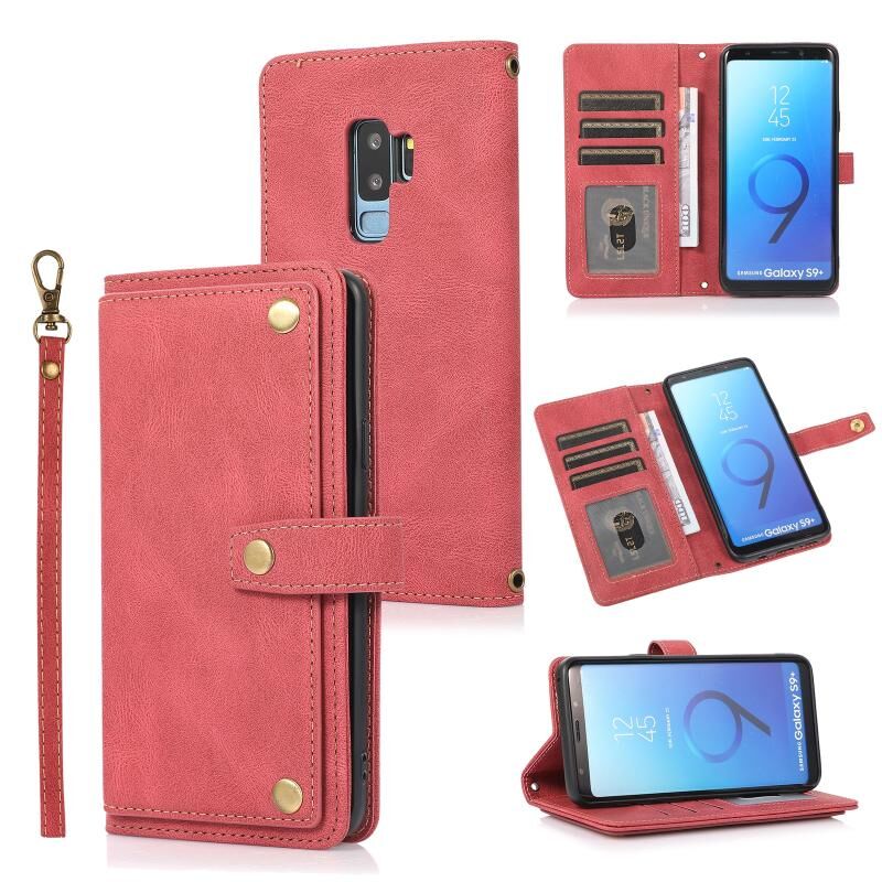Για Samsung Galaxy S9+ PU + TPU Οριζόντια θήκη από δέρμα με θήκη για κάρτες, υποδοχή για κάρτες, πορτοφόλι και κορδόνι (κόκκινο κρασί)