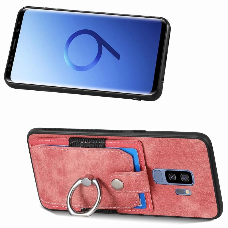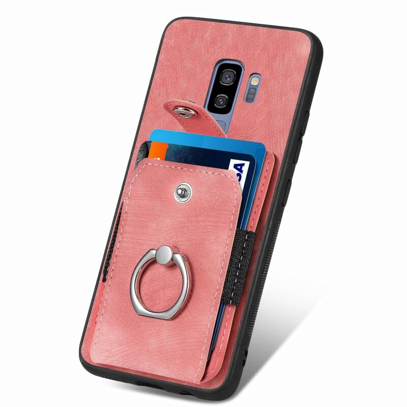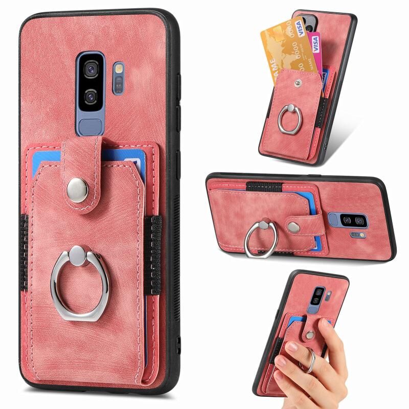 Για Samsung Galaxy S9 + Ρετρό δέρμα-feel δαχτυλίδι κάρτα πορτοφόλι υπόθεση τηλεφώνου (ρόζ)