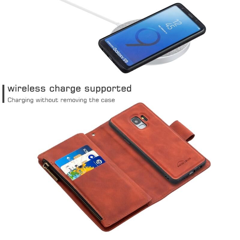 Για Samsung Galaxy S9 Skin Feel Αποσπώμενο μαγνητικό φερμουάρ Οριζόντια Flip PU δερμάτινη θήκη με υποδοχές για πολλαπλές κάρτες & θήκη & πορτοφόλι & κορνίζα & κορδόνι (καφέ)