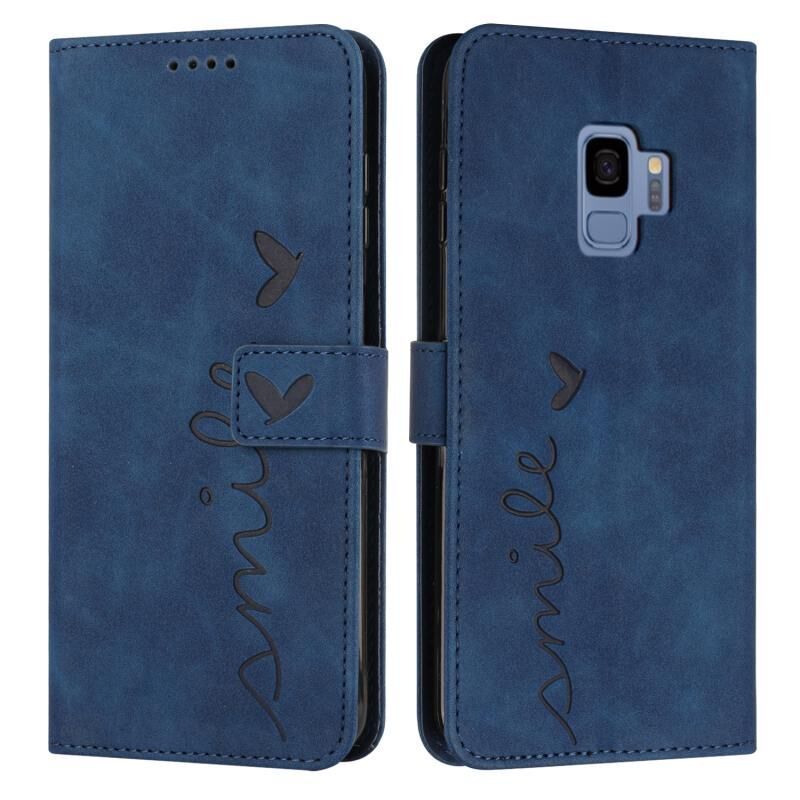 Για Samsung Galaxy S9 δέρμα αίσθηση καρδιά μοτίβο δερμάτινη θήκη τηλεφώνου (μπλε)