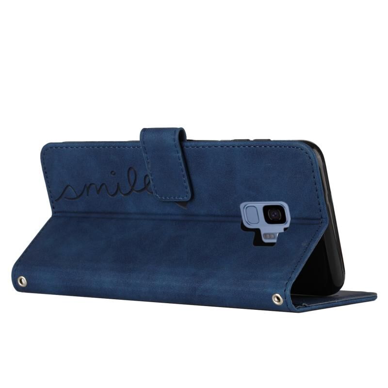 Για Samsung Galaxy S9 δέρμα αίσθηση καρδιά μοτίβο δερμάτινη θήκη τηλεφώνου με κορδόνι (μπλε)