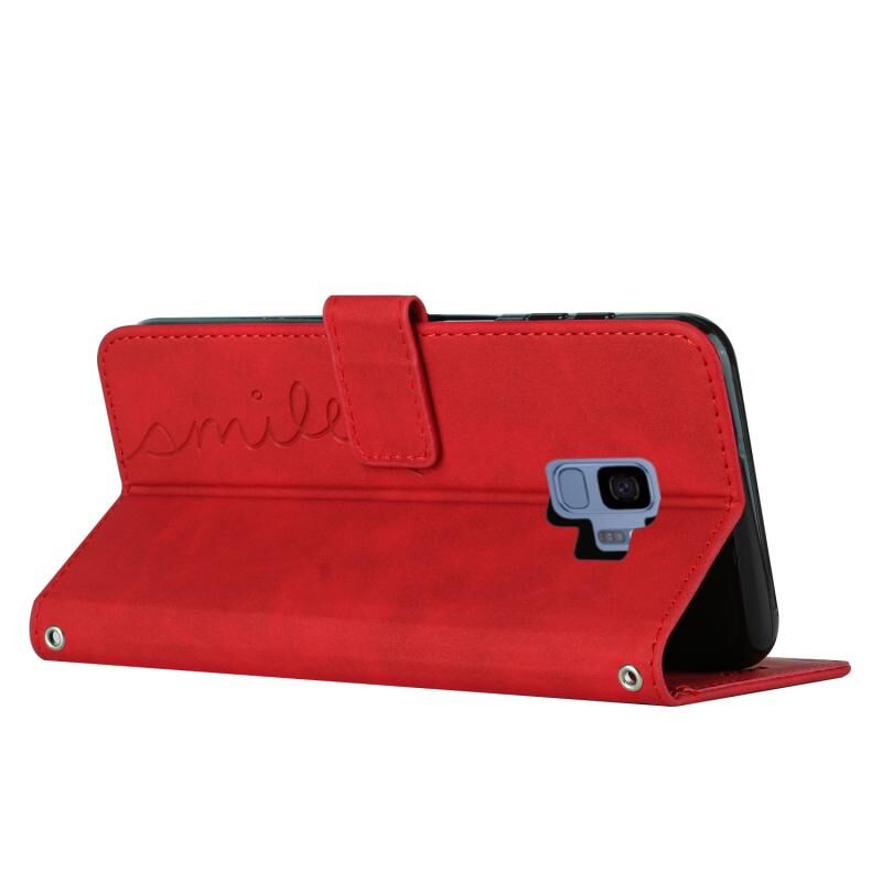 Για Samsung Galaxy S9 δέρμα αίσθηση καρδιά μοτίβο δερμάτινη θήκη τηλεφώνου με κορδόνι (κόκκινο)