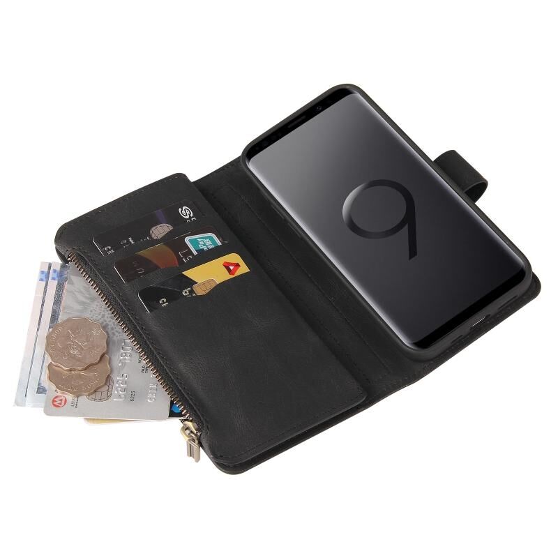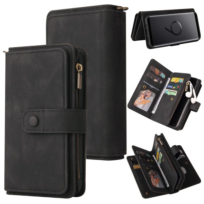 Για το Samsung Galaxy S9 Skin Feel PU + TPU Οριζόντια Flip δερμάτινη θήκη με υποδοχή & 15 κάρτες Slot & πορτοφόλι & φερμουάρ τσέπη & Lanyard (Μαύρο)