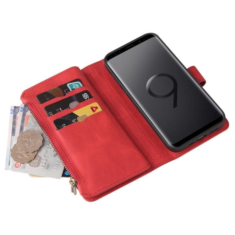 Για το Samsung Galaxy S9 Skin Feel PU + TPU Οριζόντια Flip δερμάτινη θήκη με θήκη για 15 κάρτες & υποδοχή & πορτοφόλι & τσέπη με φερμουάρ & κορδόνι (κόκκινο)