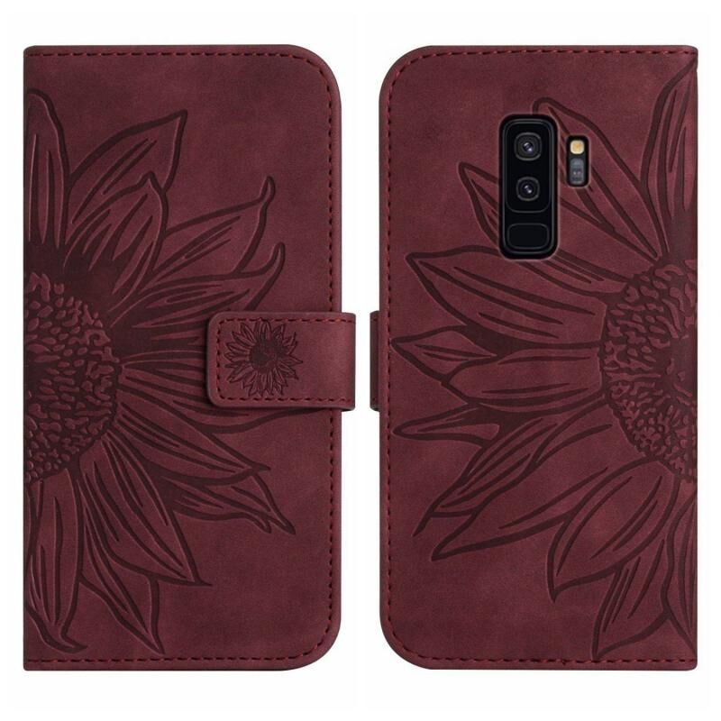 Για το Samsung Galaxy S9 + δέρμα αισθάνονται ήλιος λουλούδι μοτίβο Flip δέρμα τηλέφωνο υπόθεση με κορδόνι (κόκκινο κρασί)