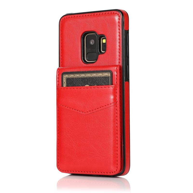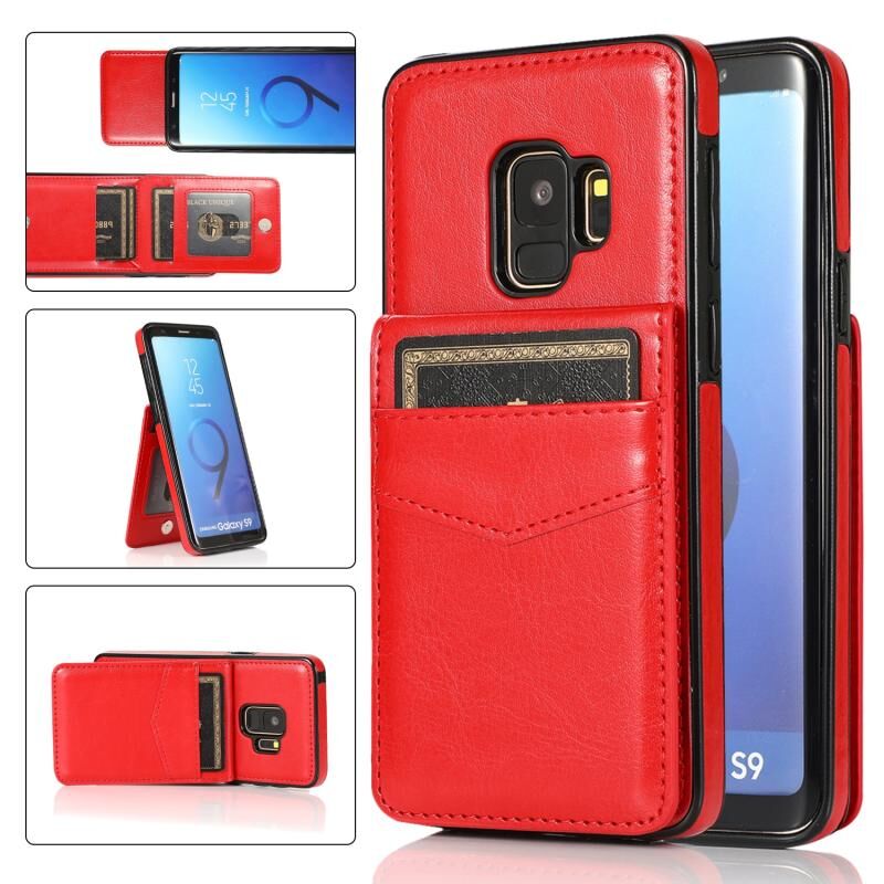 Για Samsung Galaxy S9 Αμιγές χρώμα PC + TPU προστατευτική θήκη με θήκη & υποδοχές για κάρτες (κόκκινο)