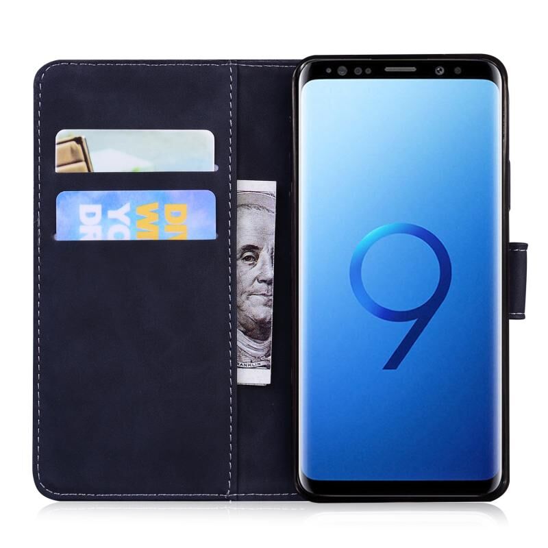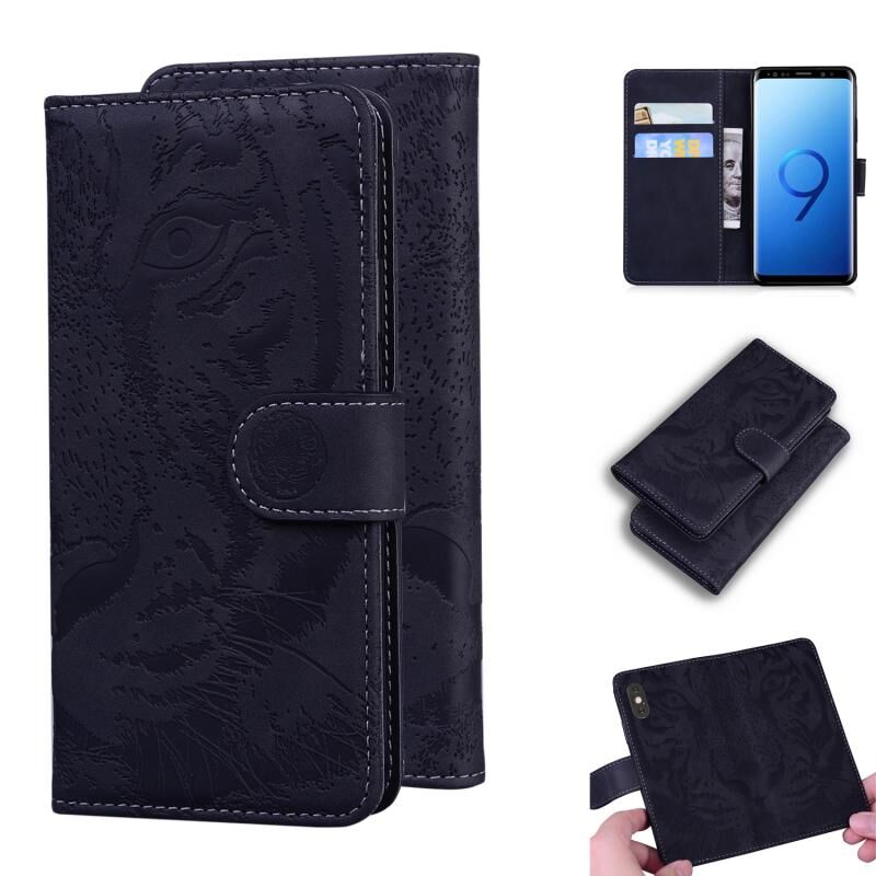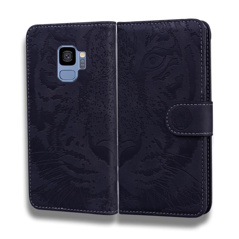 Θήκη δέρματος οριζόντιας αναδίπλωσης με ανάγλυφο μοτίβο τίγρης για Samsung Galaxy S9 με βάση & υποδοχές καρτών & πορτοφόλι (Μαύρο)