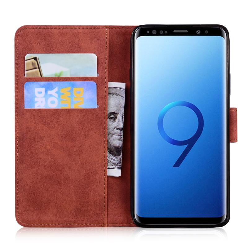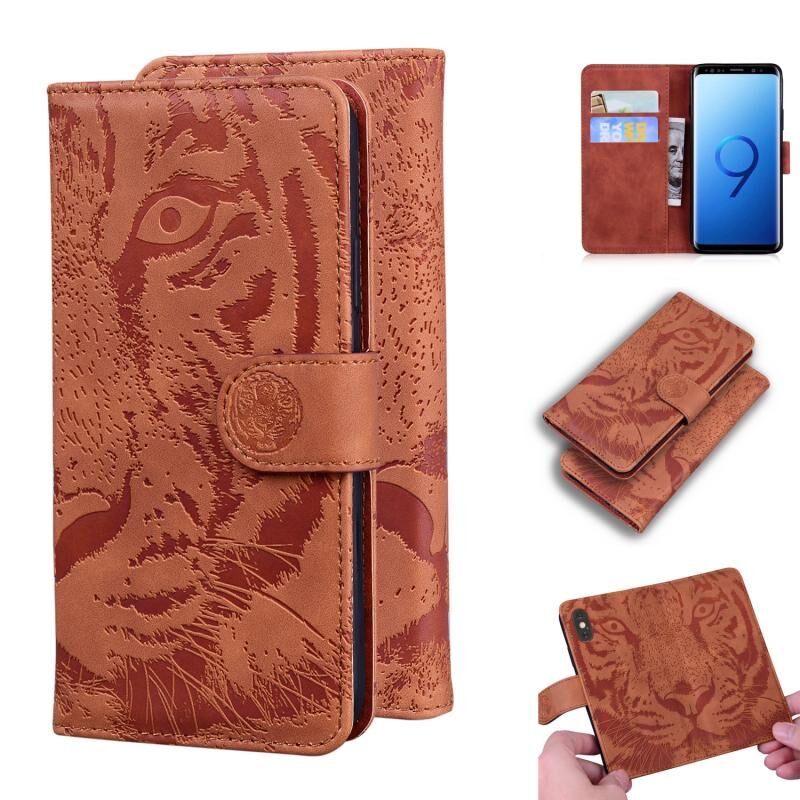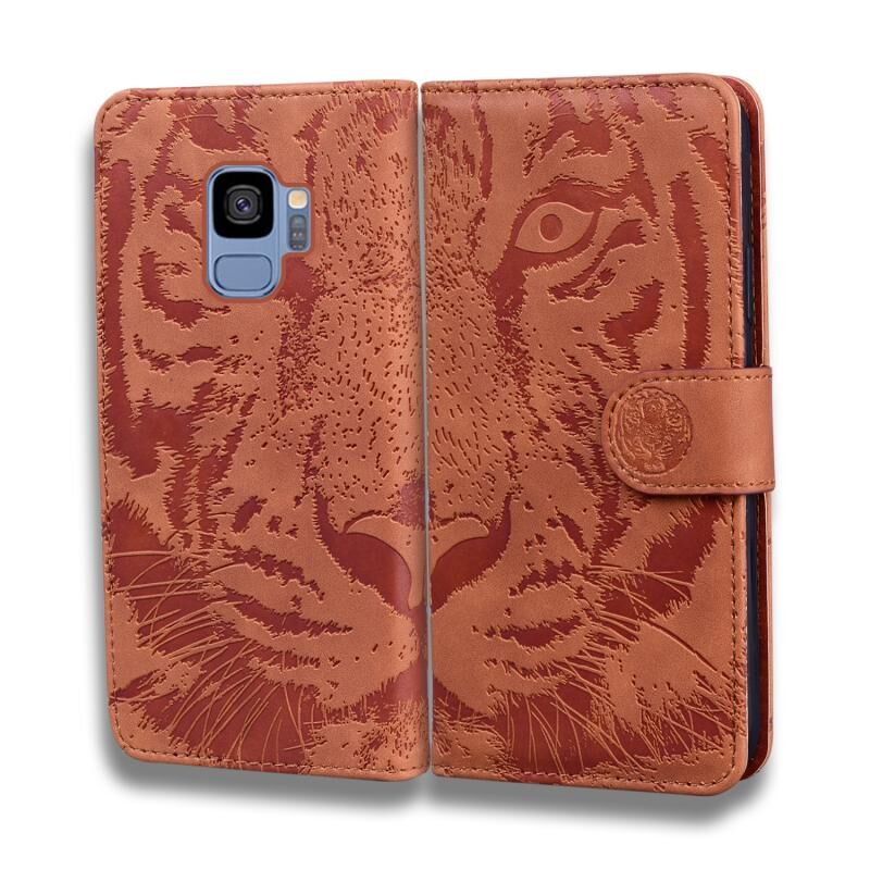 Θήκη δέρματος οριζόντιας αναδίπλωσης με ανάγλυφο μοτίβο τίγρης για Samsung Galaxy S9 με βάση & υποδοχές καρτών & πορτοφόλι (Καφέ)