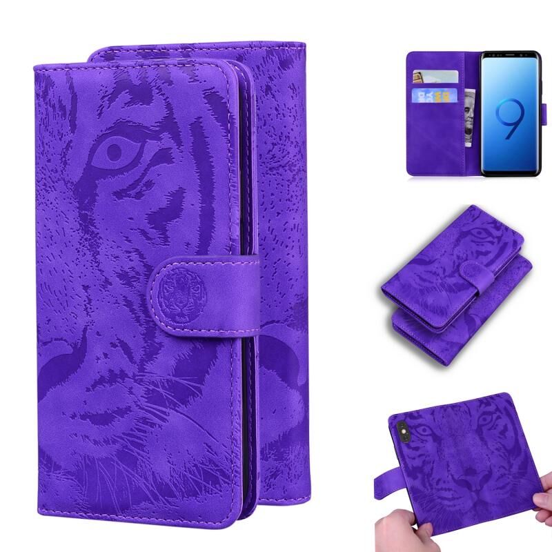 Θήκη δέρματος οριζόντιας αναδίπλωσης με ανάγλυφο μοτίβο τίγρης για Samsung Galaxy S9 με βάση & υποδοχές καρτών & πορτοφόλι (Μωβ)