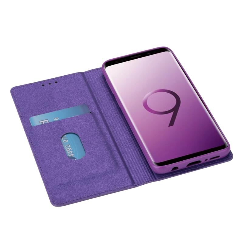 Θήκη Samsung Galaxy S9 Ultrathin Glitter Μαγνητική Οριζόντια Δερμάτινη με Στήριξη & Θήκες Καρτών (Μωβ)