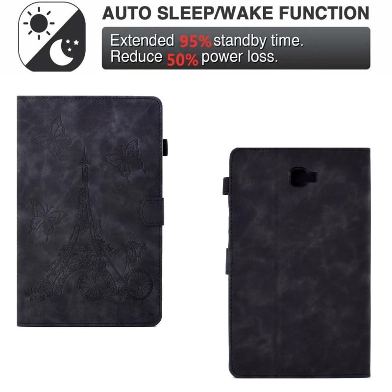 Για Samsung Galaxy Tab A 10.1 2016 T580 Tower ανάγλυφη δερμάτινη θήκη για έξυπνο tablet (μαύρο)