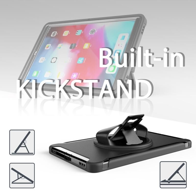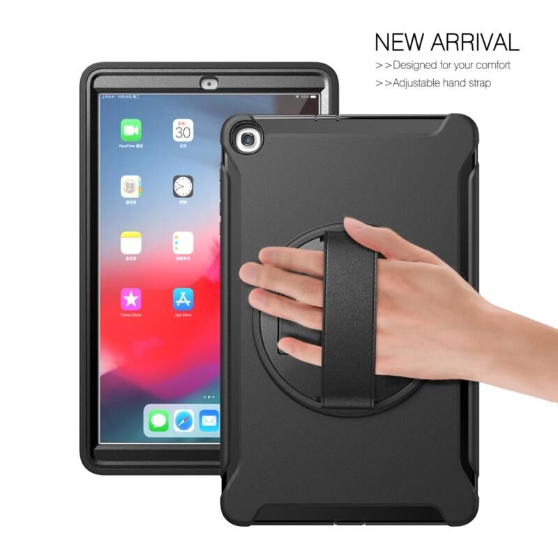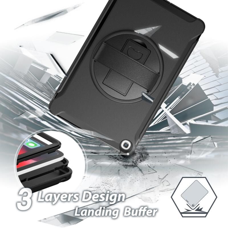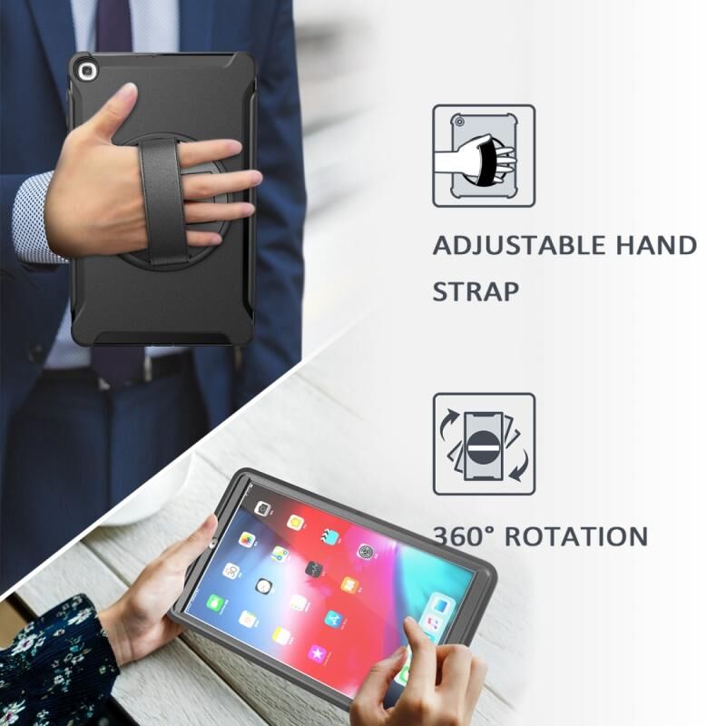 Για Samsung Galaxy Tab A 10.1 (2019) T510 / T515 Προστατευτική θήκη PC+TPU με περιστροφή 360 μοιρών και βάση στήριξης & λουρί χειρός (Μαύρο)